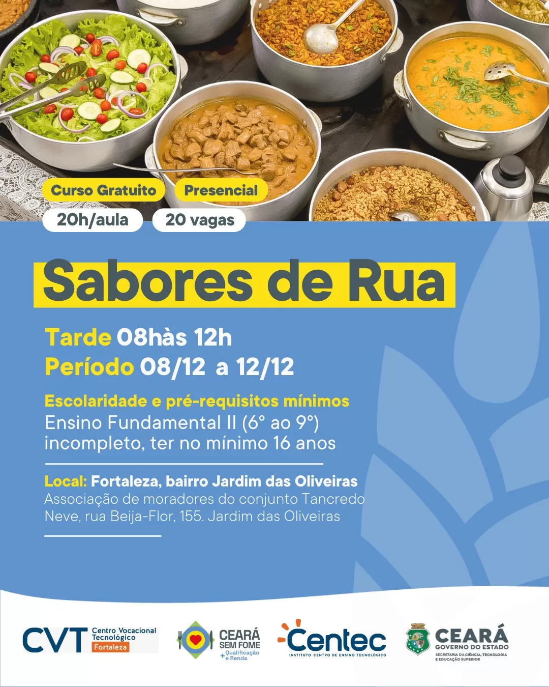 Uma parceria entre CVT Fortaleza, Centec, Ceará Sem Fome + Qualificação e Renda e Governo do Ceará, unindo esforços para construir novas possibilidades.