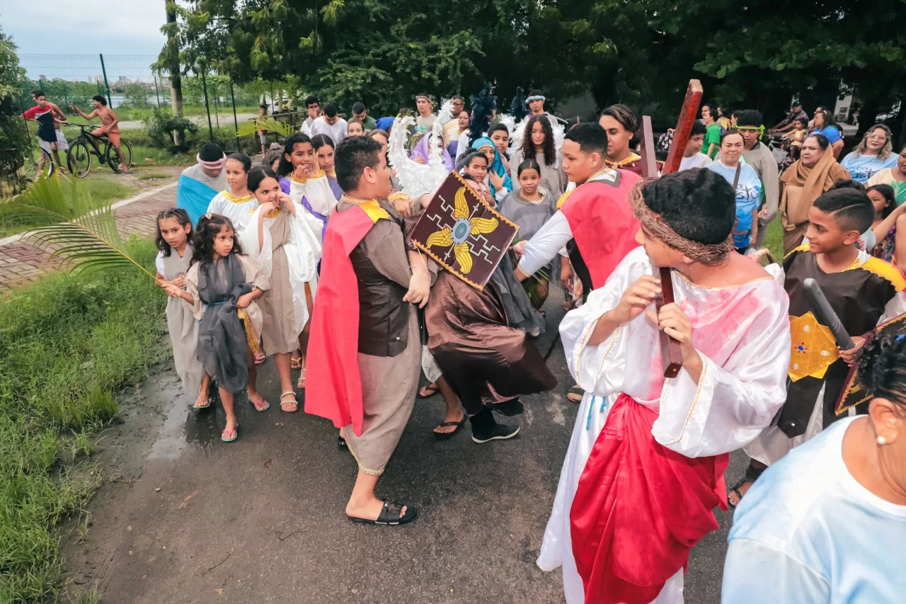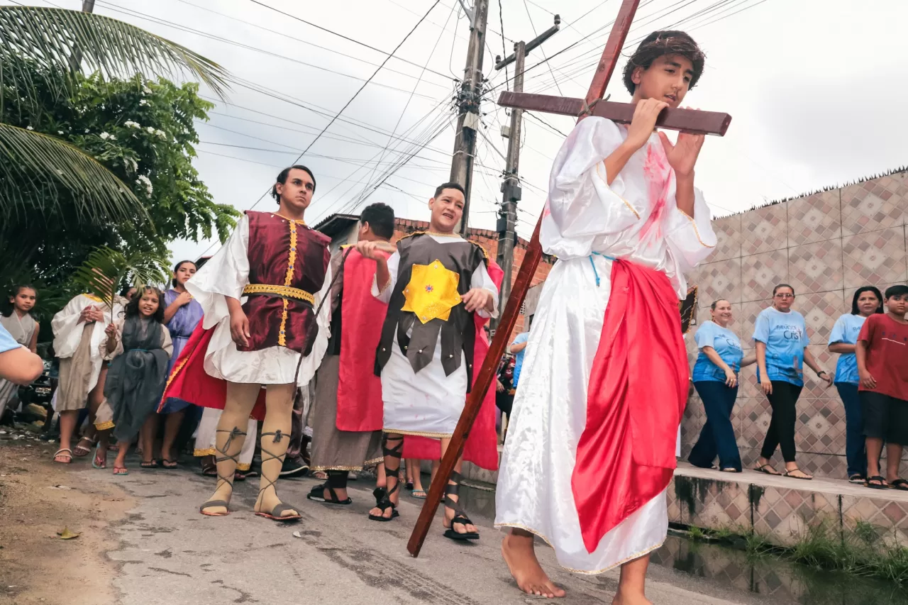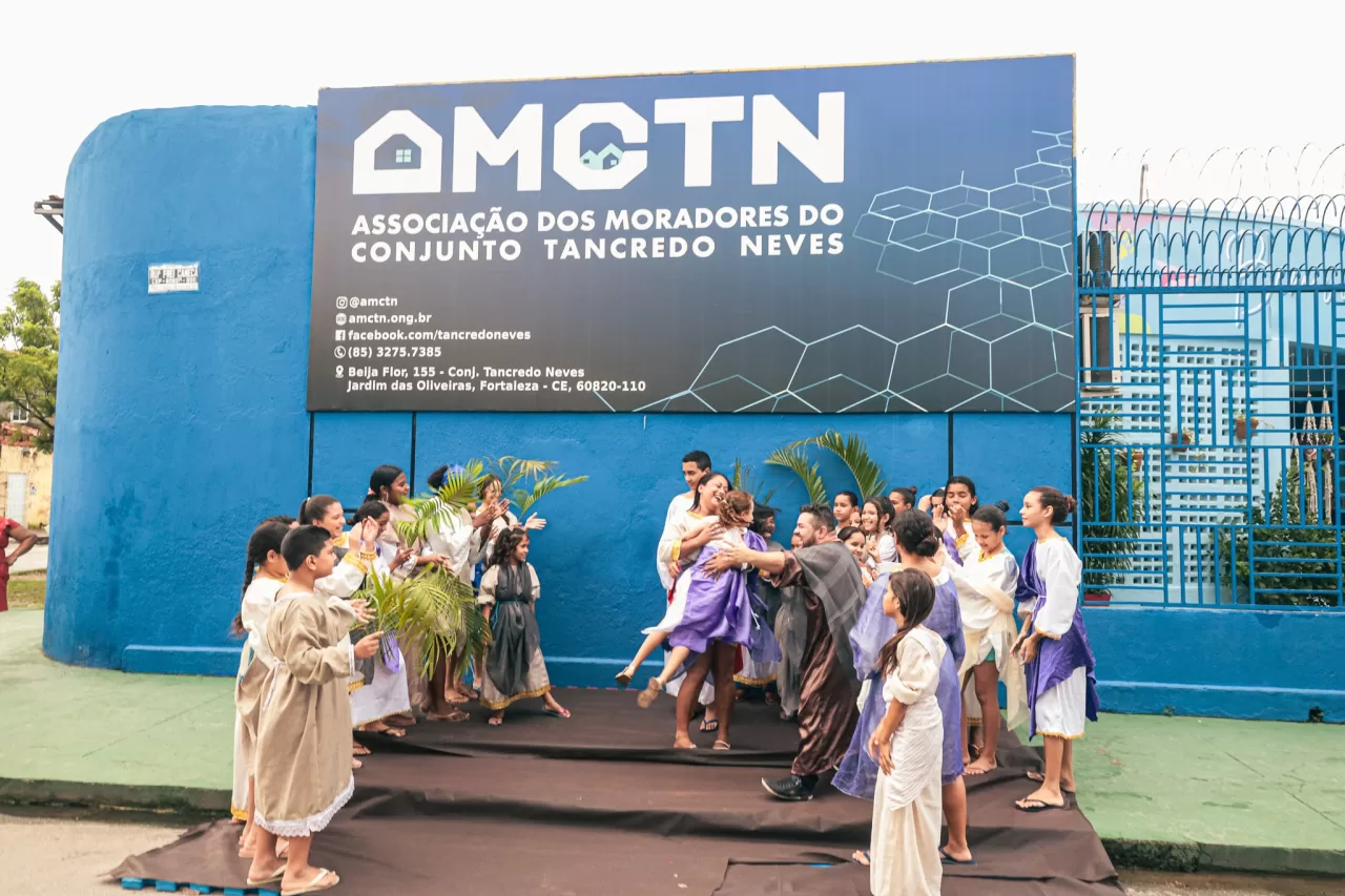 O Projeto Paixão de Cristo Pés no Chão é uma iniciativa cultural da AMCTN – Associação dos Moradores do Conjunto Tancredo Neves, que visa garantir espaço a crianças, adolescentes e jovens em situação de risco social.